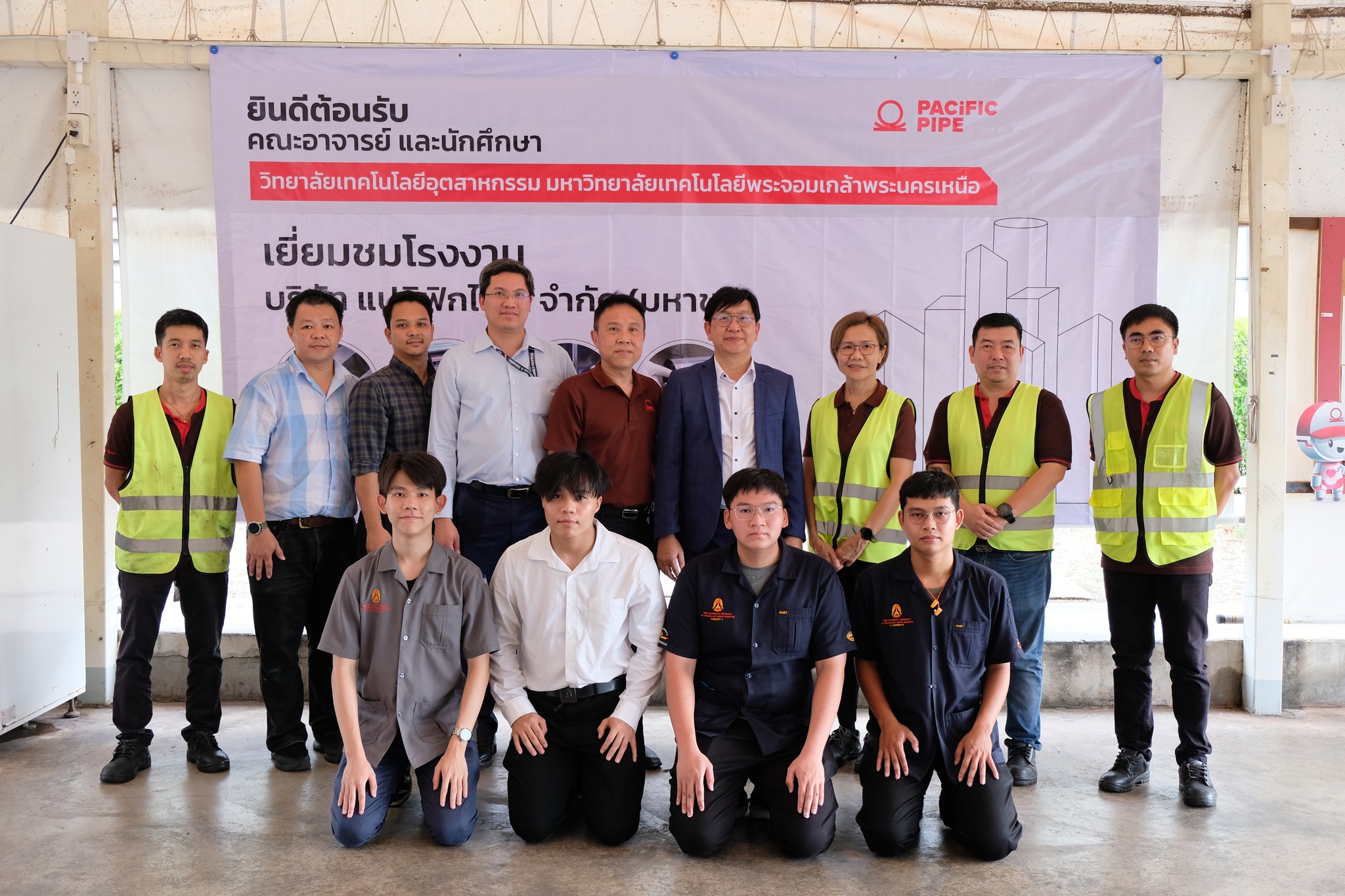 บริษัท แปซิฟิกไพพ์ จำกัด (มหาชน) ผู้ผลิตและจำหน่ายท่อเหล็กคุณภาพตามมาตรฐานสากล สำหรับงานโครงสร้างและงานระบบ นำโดย ดร. เอื้อมพร ปัญญาใส ประธานเจ้าหน้าที่บริหาร และคณะฯ เป็นตัวแทนบริษัทฯ ให้การต้อนรับคณะอาจารย์และนักศึกษา วิทยาลัยเทคโนโลยีอุตสาหกรรม มหาวิทยาลัยเทคโนโลยีพระจอมเกล้าพระนครเหนือ ในโอกาสเข้าเยี่ยมชมโรงงานศูนย์มหาชัย 3 เพื่อเป็นการเสริมสร้างประสบการณ์จริงให้แก่นักวิจัยและนักศึกษาของมหาวิทยาลัย ได้เห็นกระบวนการผลิตท่อเหล็กที่มีคุณภาพตามมาตรฐานสากล มีการใช้งานจริงในอุตสาหกรรม นำไปสู่การพัฒนาการเรียนการสอน งานวิจัย และสิ่งประดิษฐ์ต่างๆ ในทางอุตสาหกรรมได้ในอนาคต เมื่อวันที่ 23 พฤษภาคม ที่ผ่านมา