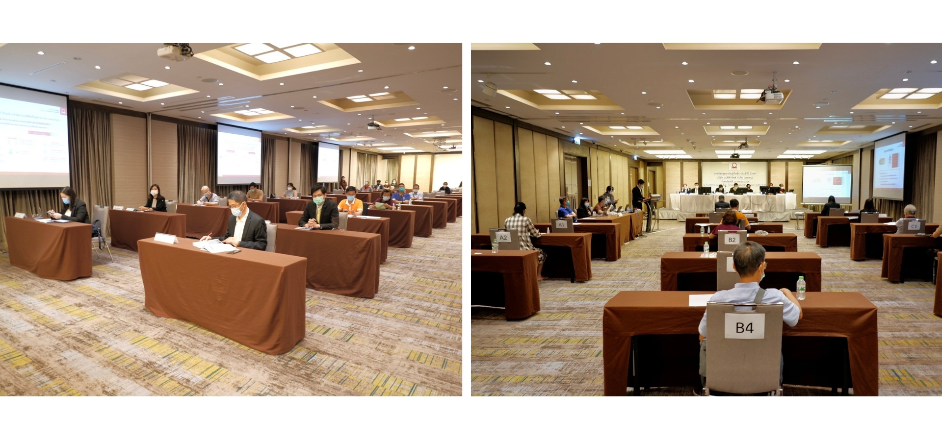 ระหว่างการประชุมฯ บริษัทฯ จำกัดจำนวนผู้เข้าร่วมประชุมไม่เกิน 50 ท่านและมีการเว้นระยะห่างไม่ต่ำกว่า 1.5 เมตรพร้อมทั้งกำหนดที่นั่งตามรายชื่อที่มาลงทะเบียน เพื่อการสอบสวนโรคหากเกิดเหตุ ไม่พึงประสงค์ขึ้น งดการแจกและรับประทานอาหาร - เครื่องดื่มภายในห้องประชุม ตลอดจนงดการใช้ไมโครโฟนในการสอบถามหรือแสดงความคิดเห็นโดยใช้การเขียนข้อความแทน รวมถึงดำเนินการประชุมอย่างกระชับ เพื่อความปลอดภัยสูงสุดของผู้ถือหุ้นซึ่งผลการประชุมในครั้งนี้เป็นไปด้วยความเรียบร้อย