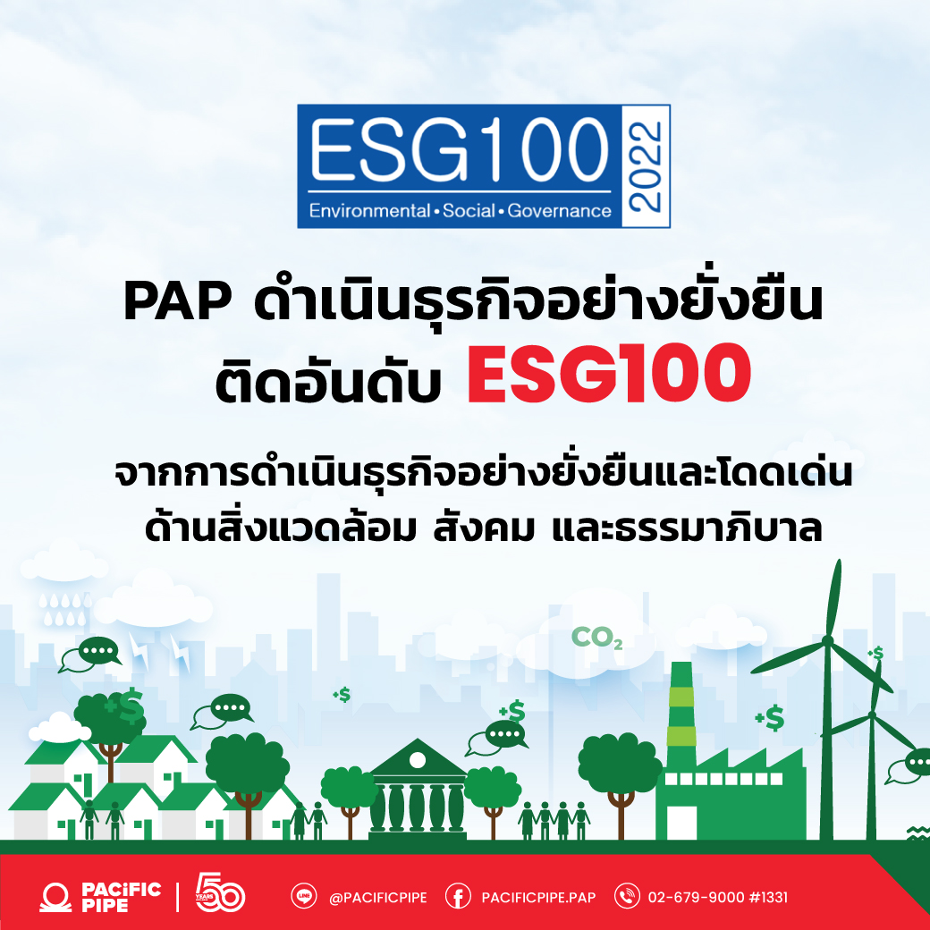 แปซิฟิกไพพ์ ดำเนินธุรกิจอย่างยั่งยืน ติดอันดับ ESG100 ด้วยผลการดำเนินงานโดดเด่นด้านสิ่งแวดล้อม สังคม และธรรมาภิบาล