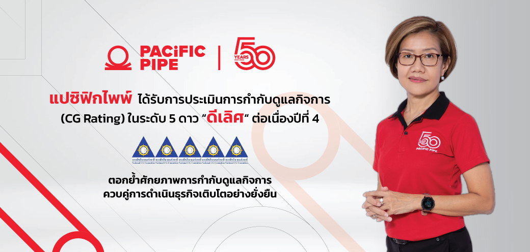 แปซิฟิกไพพ์ ได้รับการประเมินด้านการกำกับดูแลกิจการ (CG Rating) ในระดับ 5 ดาว “ดีเลิศ” ต่อเนื่องปีที่ 4
